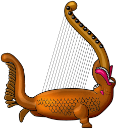 Used by Dravidian Tamil from at least 2200 years ago, by the 7th century it had come into disuse. It had a curved ebony neck with gut strings above the skin covered resonator shaped like a boat, but there are versions shaped like peacocks, fish and even the monster Makara.