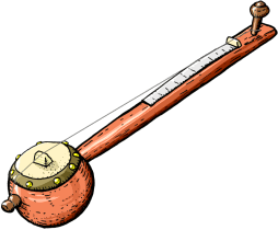 Used in Punjabi folk and devotional music, it has a single string over a long wooden neck that pierces the tiny parchment covered soundbox.